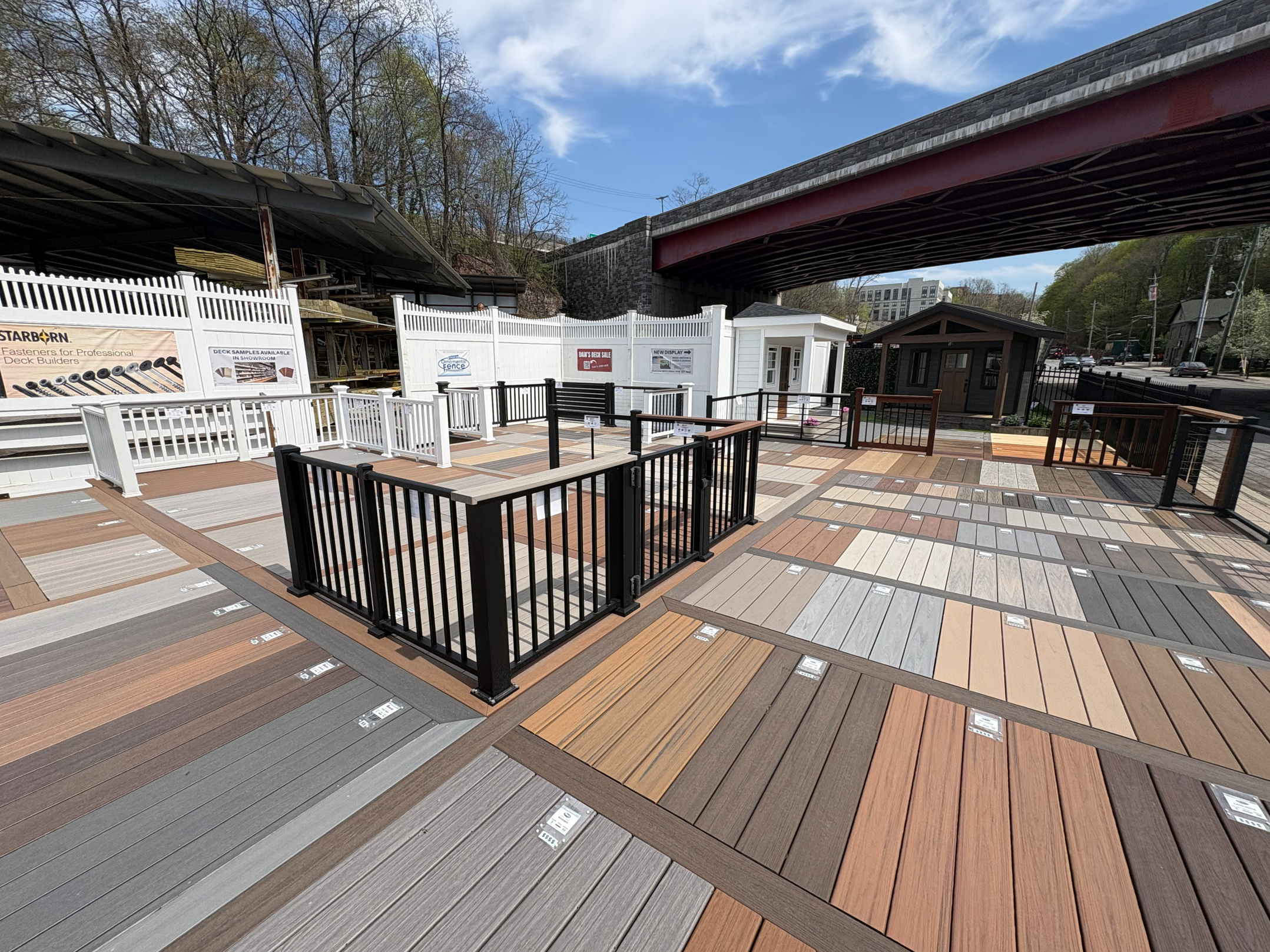 If you're planning a deck design project, you might want to check out our 2,500 sq. ft. deck. With dozens of composite, PVC and wood types, endless colors and plenty of handrail styles all on display, you’ll be able to see firsthand what your options are like. Many fence style and options are on display as well. Stop by anytime, as it’s open 24 hours/7 days a week for our customers convenience. Of course, if you’d like to speak with our deck experts - be sure to stop back when we’re open!